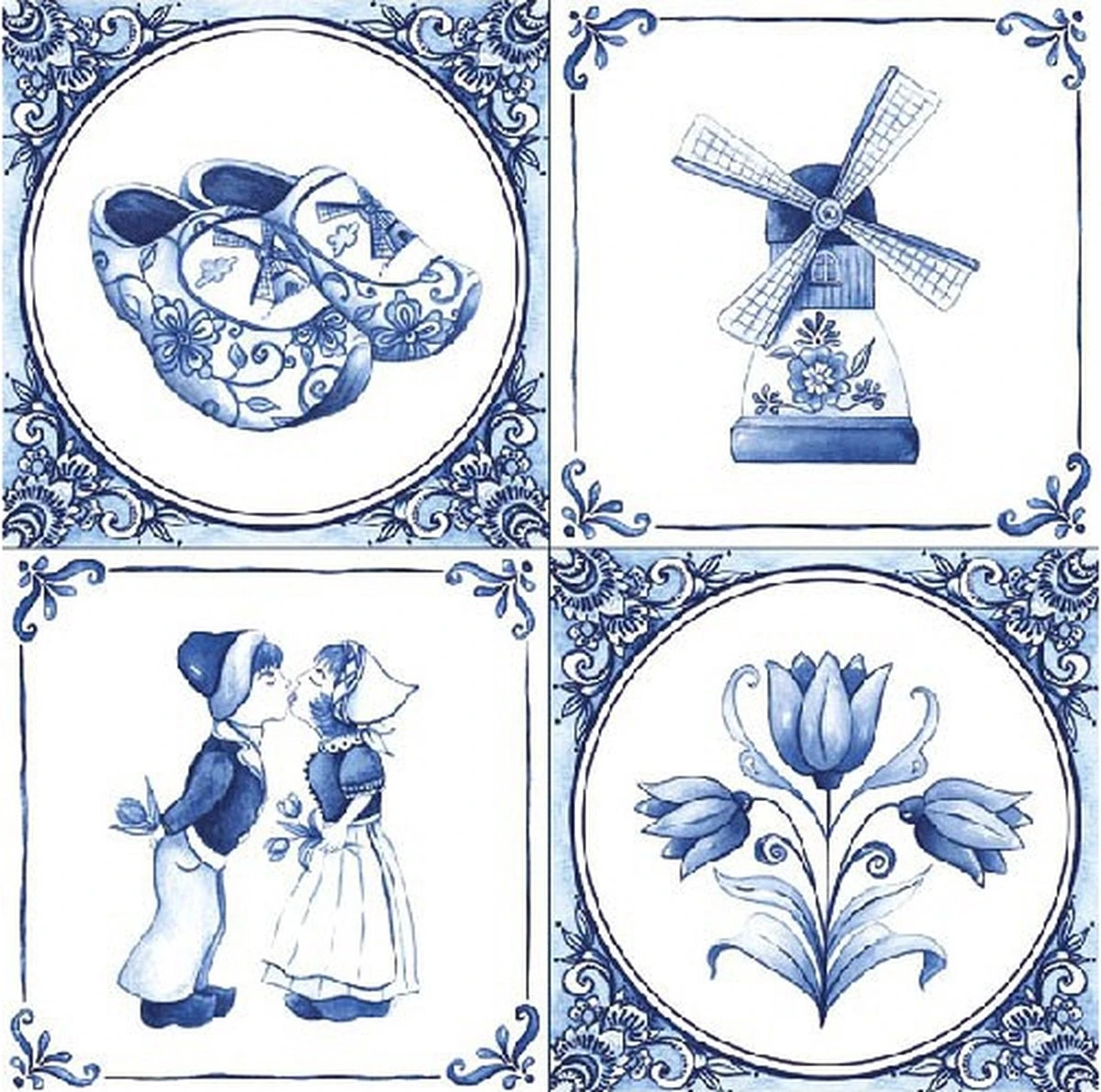 20x stuks Delfts blauw thema papieren tafel servetten 33 x 33 cm, indien uitgevouwen. Materiaal: 3-laags tissue papier.