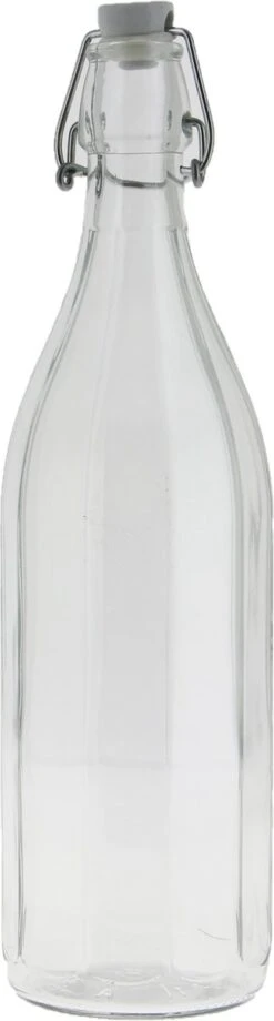 2x Stuks Glazen Fles Transparant Met Beugeldop 1000 Ml – Waterfles – Olie/azijn Fles
