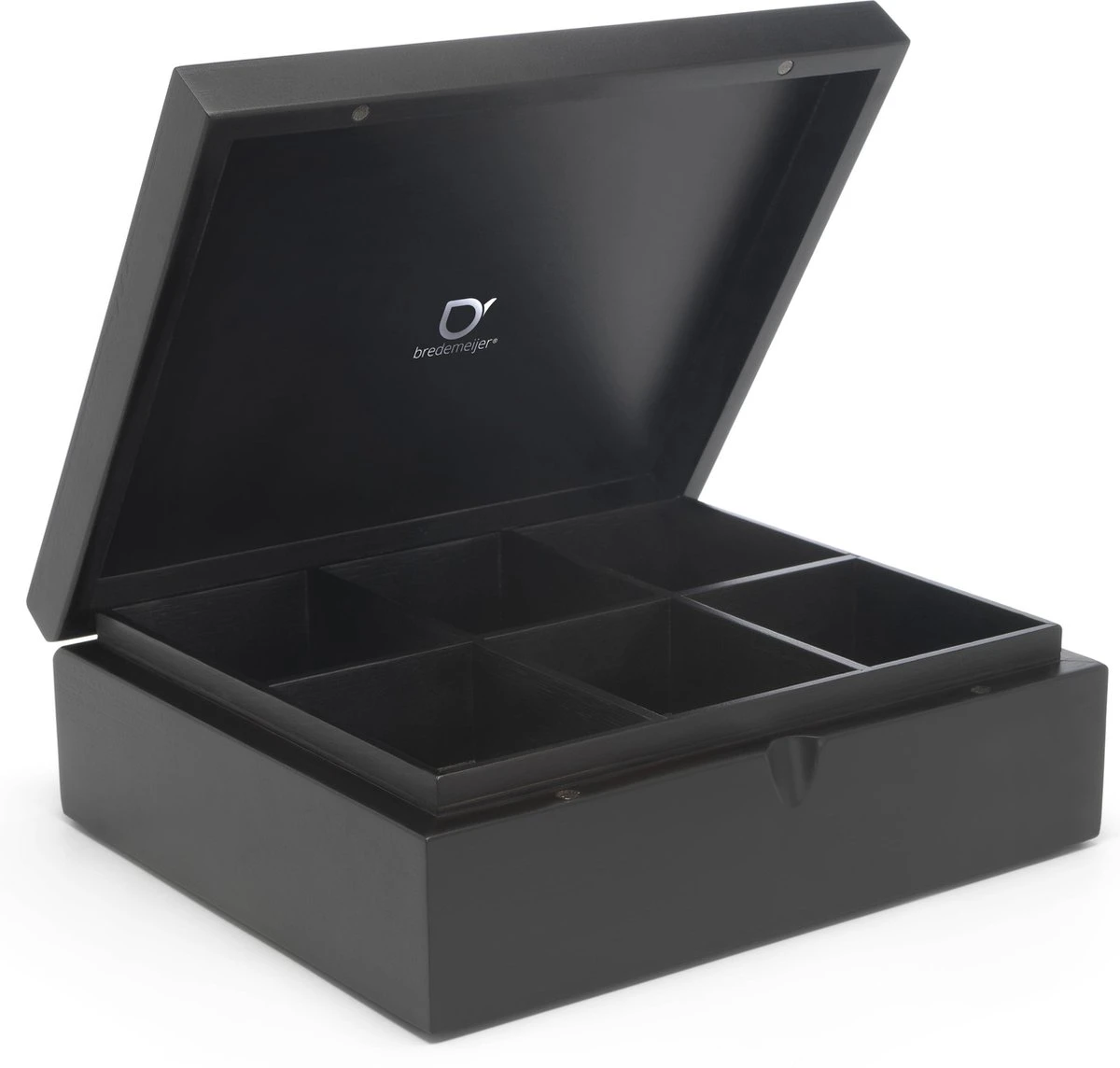 De theedoos is verkrijgbaar in 6, 9 en 12 vakken.