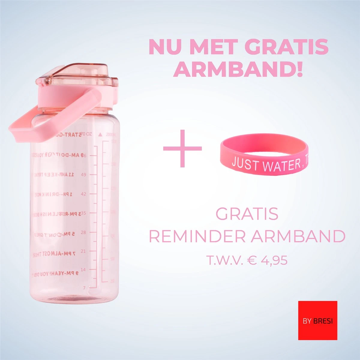 Bestel nu deze motiverende 2 liter fles en krijg er gratis ons ‘reminder’ armbandje t.w.v. 4,99 bij!