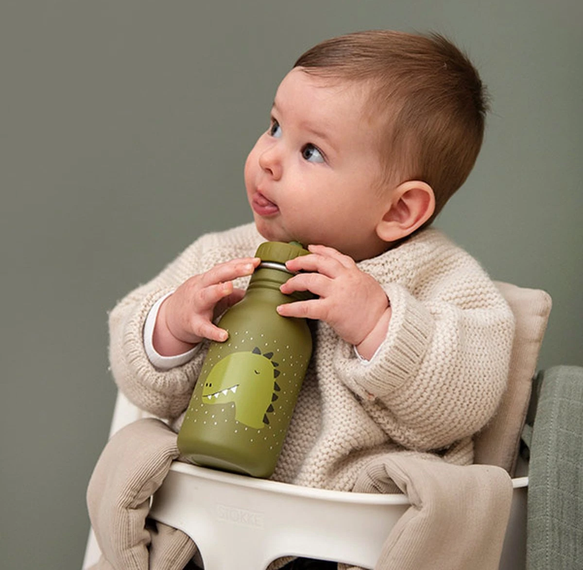 Drinkfles 500 ml Mr. Dino is de perfecte drinkbus om mee naar school of het park te nemen. De drinkfles is gemaakt uit roestvrij staal, heeft een leuk design, een makkelijk te openen drinktuit en heeft een handige draagkoord. Met deze leuke drinkfles stimuleer je kinderen om voldoende te drinken.