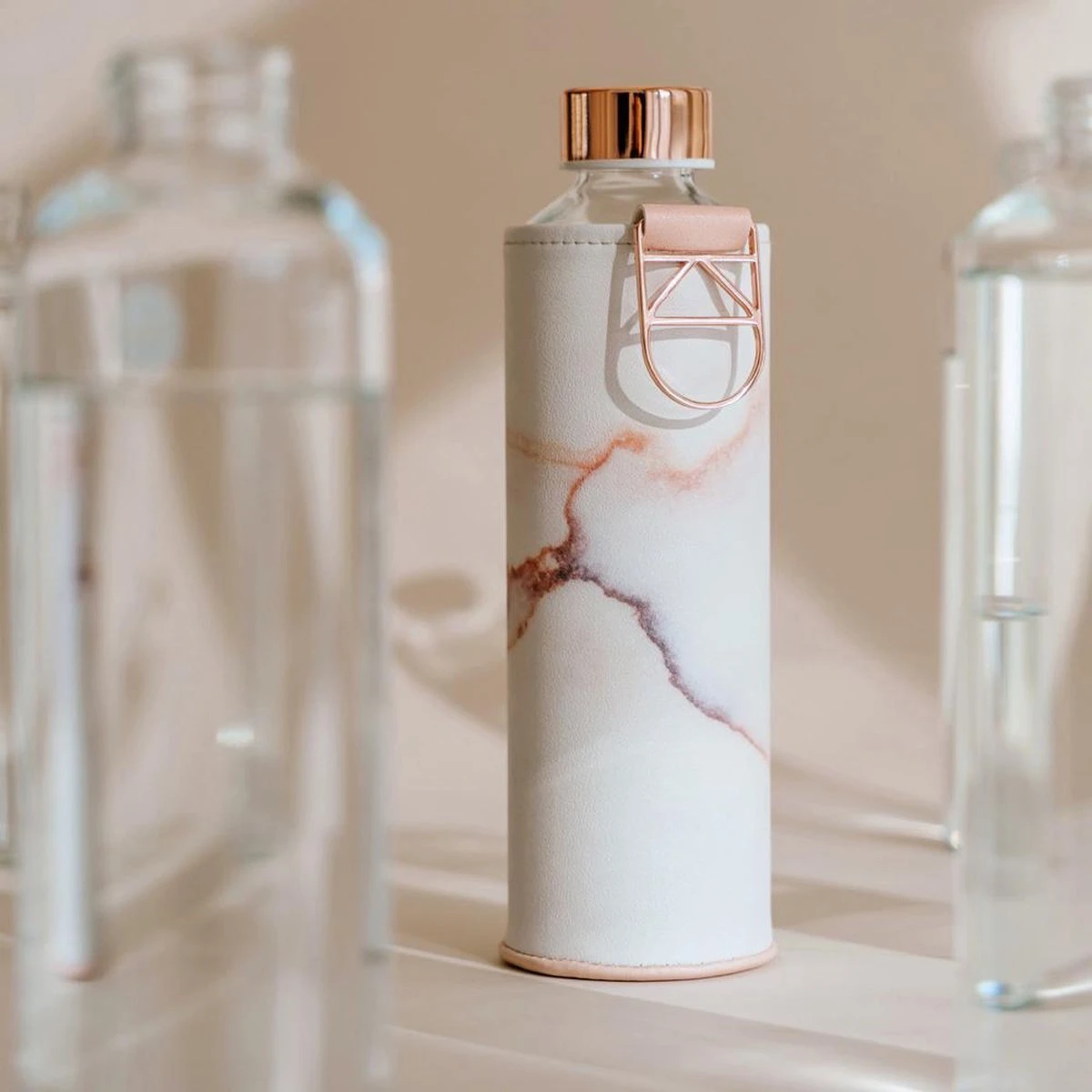 De Mismatch glazen drinkfles is voor iedereen die iets bijzonders en opvallend zoekt. De elegante, slanke waterfles is gemaakt van temperatuurbestendig en robuust borosilicaatglas, waardoor je zowel warme dranken (tot 100 °C) zoals thee en koffie als ijskoud water of limo kunt vullen.