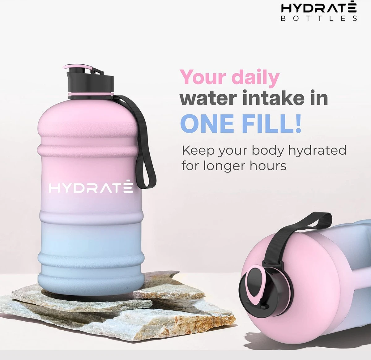 HYDRATE 2,2 Liter Waterfles – Nu Met Easy Drink Cap – Duurzaam En Extra Sterk – BPA Vrij – Ideaal Voor: Sportschool, Dieet, Bodybuilding, Buitensporten, Wandelen En Kantoor, Suikerspin