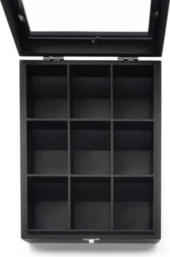 Excellent Houseware – Theedoos/theekist – 9 Vaks Hout – Zwart – 24x24cm