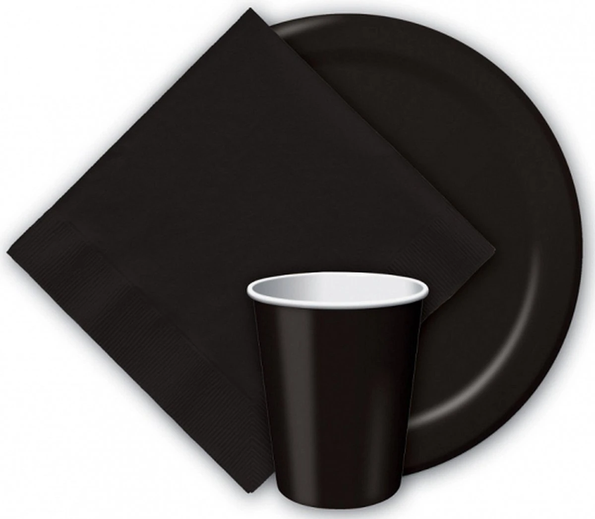 Zwarte kleuren thema tafel versieringen/decoraties feestartikelen. Papieren Zwarte thema servetten.