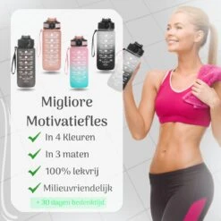 Migliore Drinkfles – Luxe Drinkfles Met Rietje – Waterfles 1 Liter – Water Bottle – Motivatie Waterfles Met Tijdmarkeringen, Ook In 600 Ml En 2 Liter