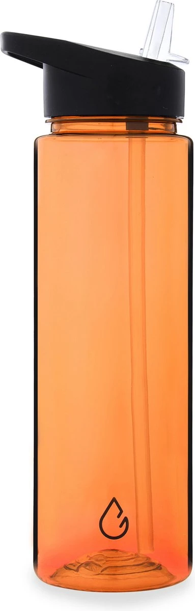 Tritan is een hard materiaal, dit betekent dat deze niet indeukt als je hem vast hebt. Omdat de fles rond en smal is ligt de fles fijn in je hand. De oranje kleur is transparant. Je kunt door de fles heen kijken, zo weet je altijd hoeveel water je al hebt gedronken of hoeveel er nog in zit. De dop is zo ontworpen dat je hem daaraan kunt vasthouden. Draai de dop eraf om de drinkfles te vullen en voeg eventueel ijsblokjes toe om je water kouder te maken.
